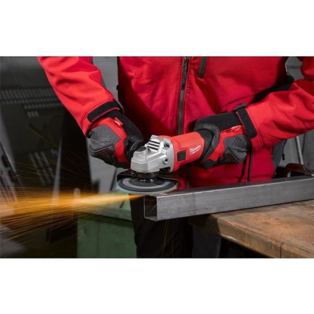 Milwaukee AG 800-125 är en kraftfull och kompakt vinkelslip med 800W motor. Vinkelslipen har ett strömskydd som gör så att om strömmen går så måste brytaren stängas av för att maskinen skall kunna sättas på igen.