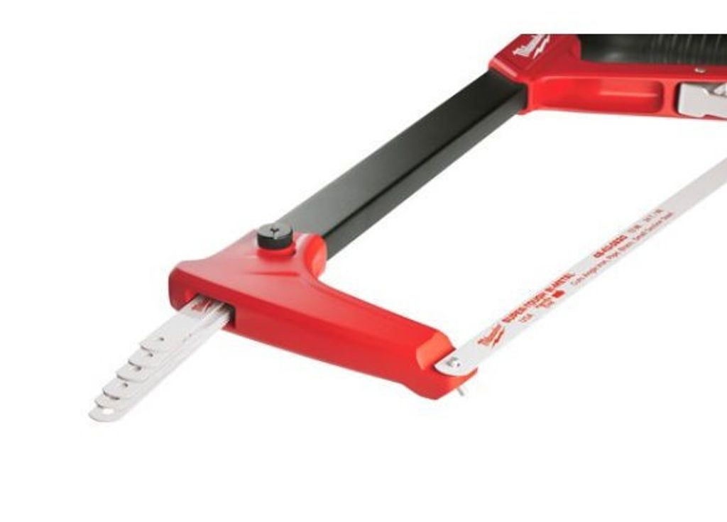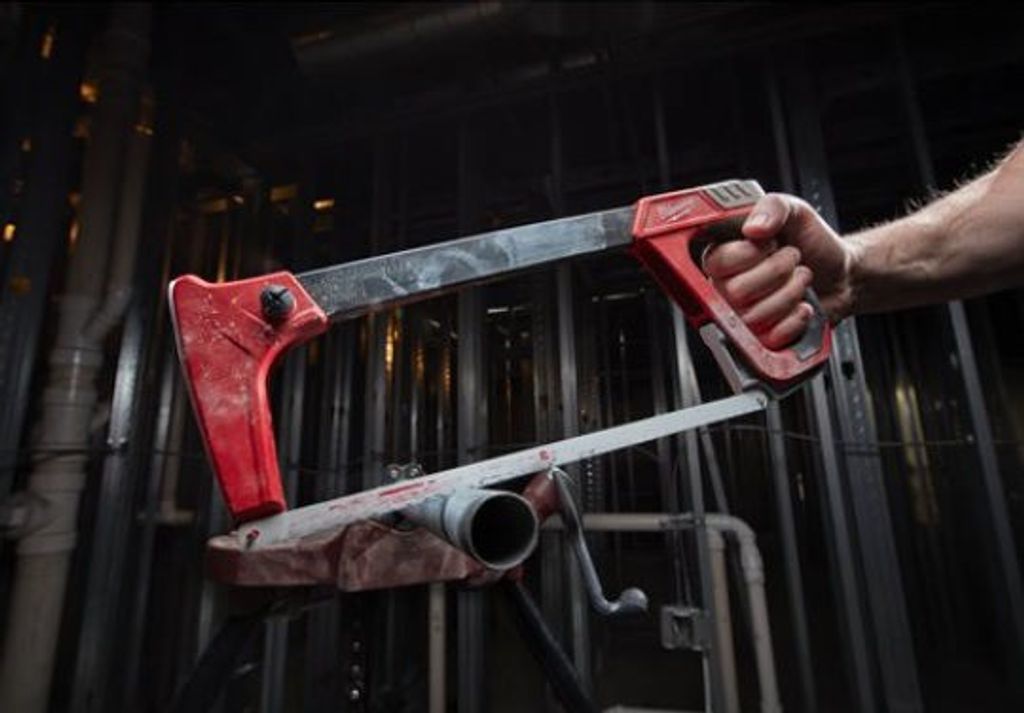 Milwaukee bågfil med kraftig metallram, klarar hög spänning (25,000 PSi/250 lbs). Gummibelagt handtag för optimal komfort.
