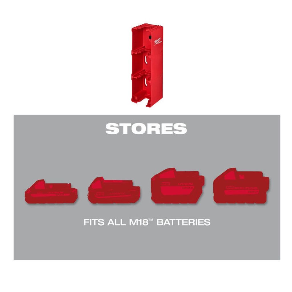 Med denna hållare för M18 batterier Milwaukees Packout system kan du enkelt förvara dina M18 batterier. Hållaren tar upp till 4st batterier.
