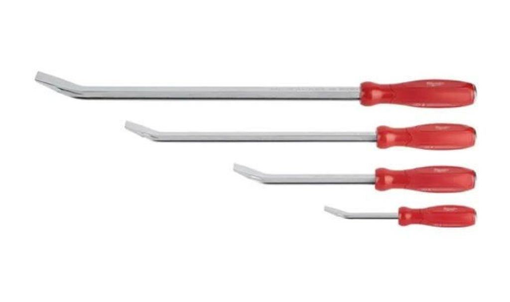Milwaukee bräckjärnsats i fyra delar. I-beam bändskaft och metallkärna för ökad och förbättrad hållbarhet. Tri-Lobe handtag för ergonomiskt och bekvämt grepp.