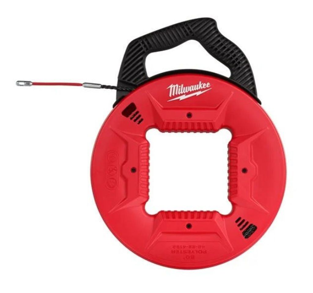 Milwaukee manuell dragfjäder med 15 m polyesterband. Flexibel dragfjäder för enklare kabelmatning. Trippelband som inte viker sig.