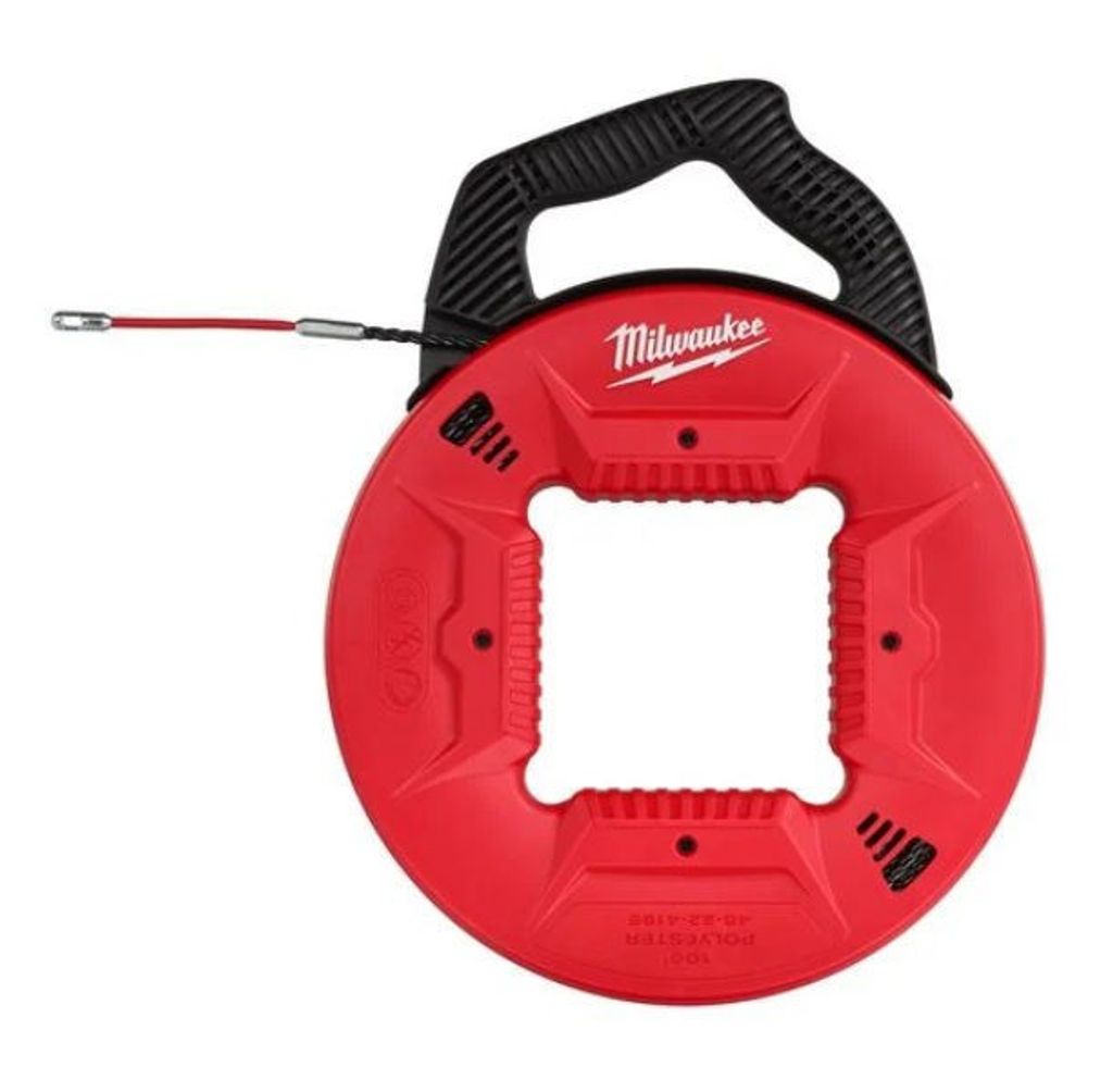 Milwaukee manuell dragfjäder med 30 m polyesterband. Flexibel dragfjäder för enklare kabelmatning. Trippelband som inte viker sig.