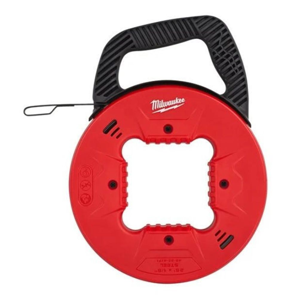 Milwaukee manuell dragfjäder med 7,5 m stålband. Flexibel dragfjäder för enklare kabelmatning. Trippelband som inte viker sig.