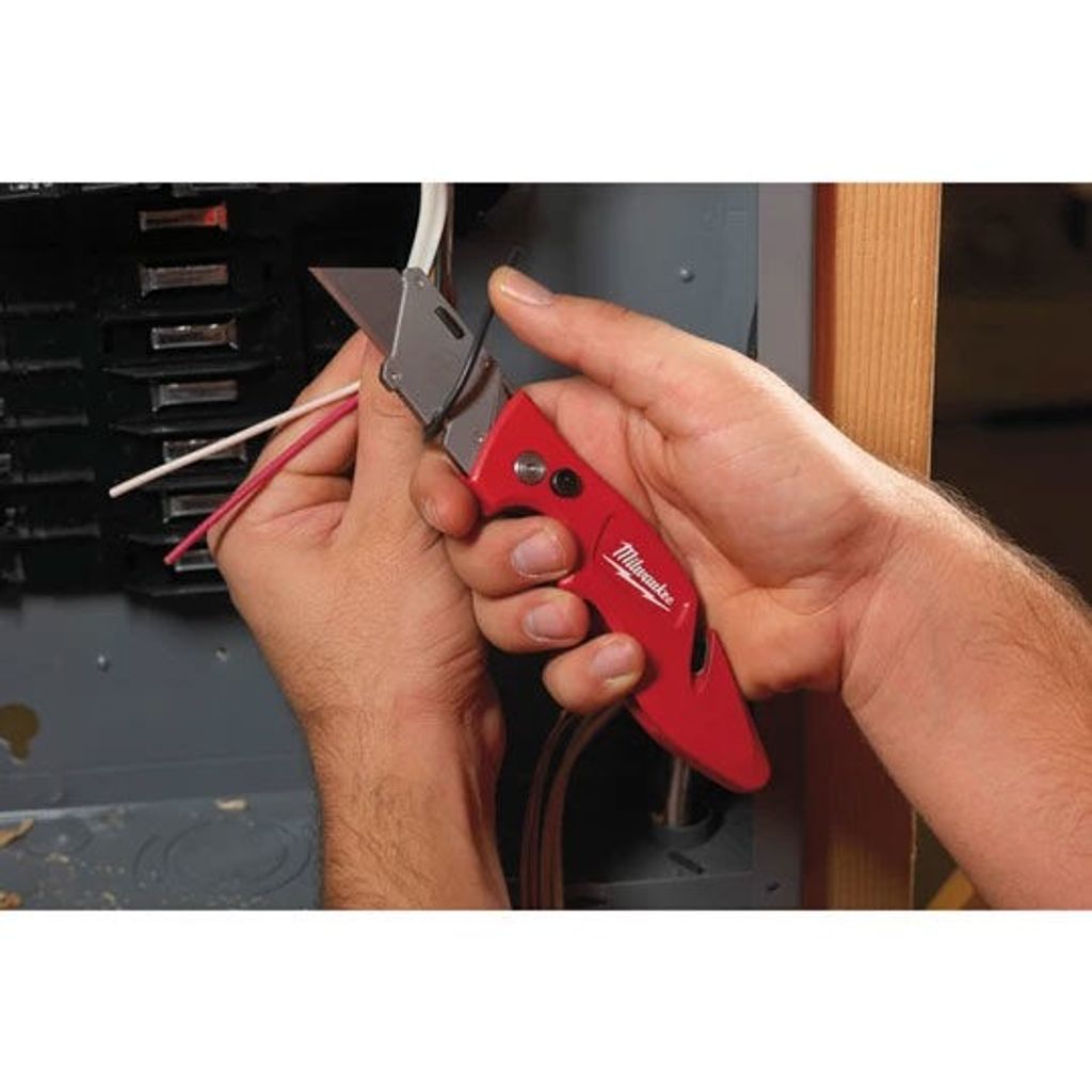 Milwaukee fällbar arbetskniv är en lättanvänd, kompakt kniv som sparar tid och ökar effektiviteten. Med enhandsgrepp, integrerad kapfunktion, verktygslöst bladbyte och inbyggd kabelskalare blir detta ett perfekt verktyg för alla snabbt behov.