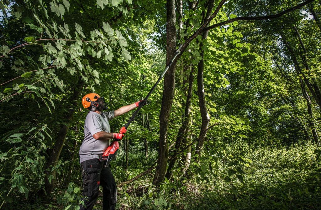 Perfekt för professionella användare inom trädgårdsarbete, skogsbruk och fastighetsskötsel där kraft, precision och räckvidd är avgörande.