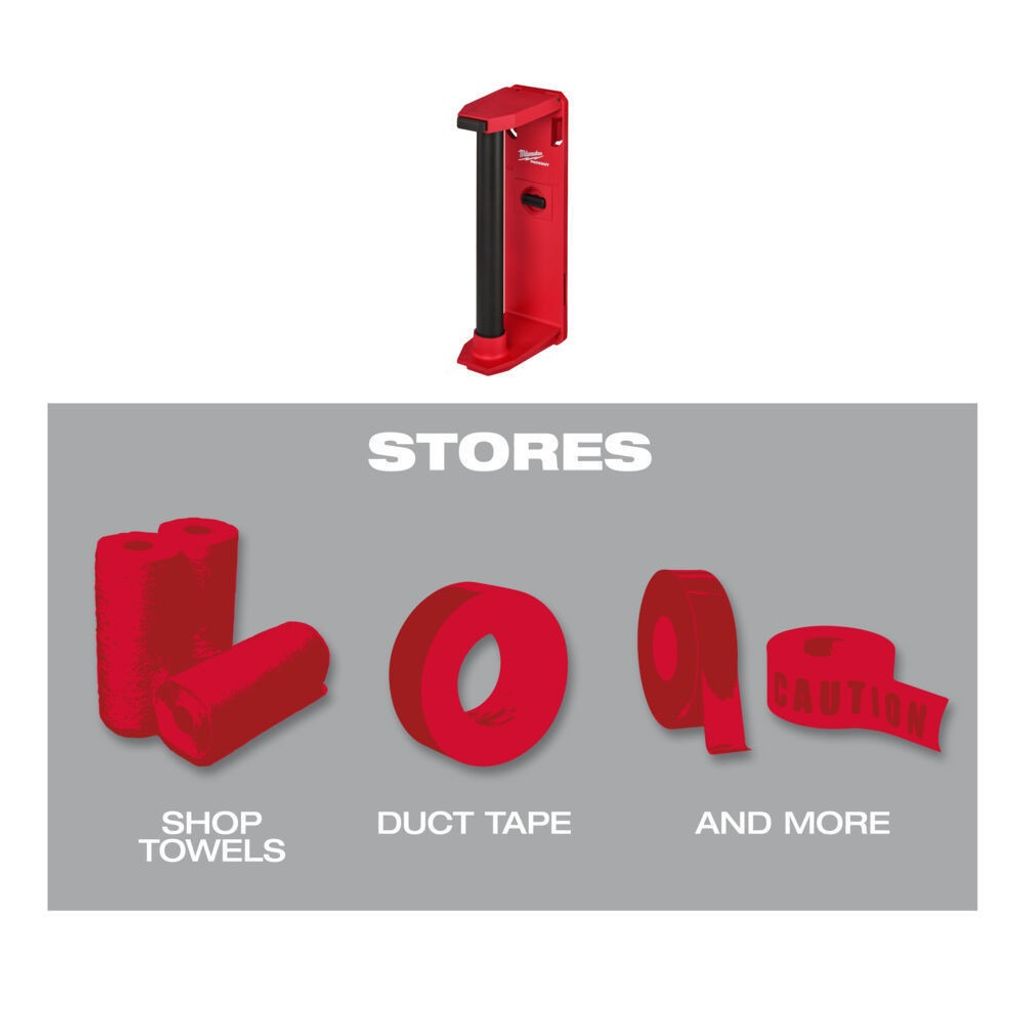 Milwaukees Packout-system torkrullehållare erbjuder enkel förvaring för torkrullar och tejp, med snabb åtkomst och enkel montering.