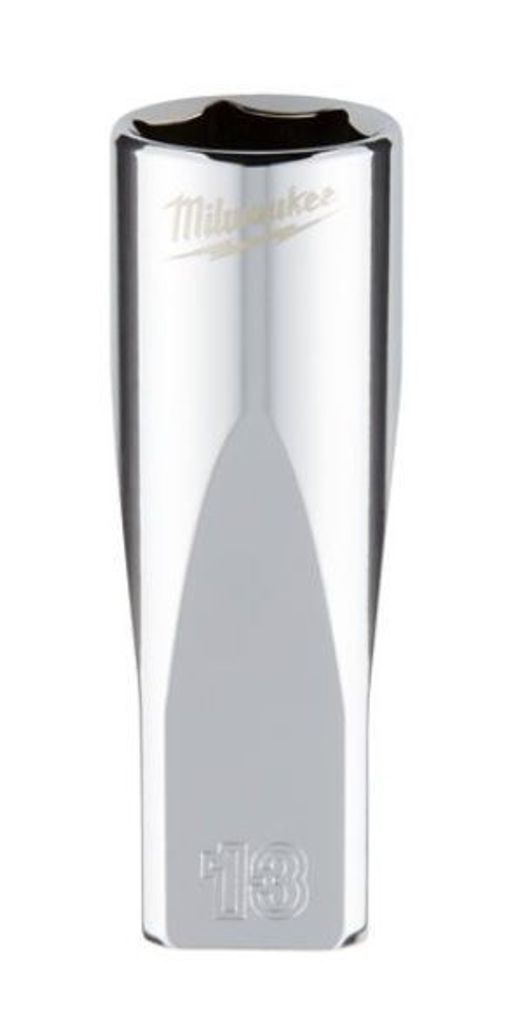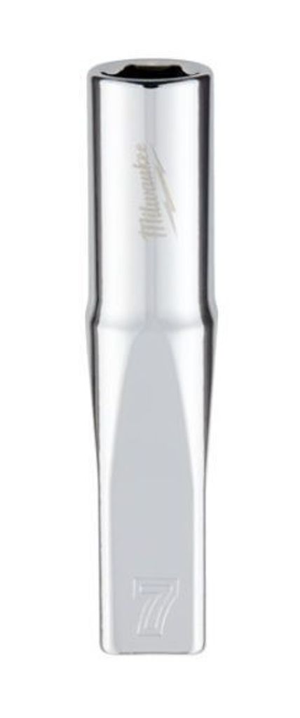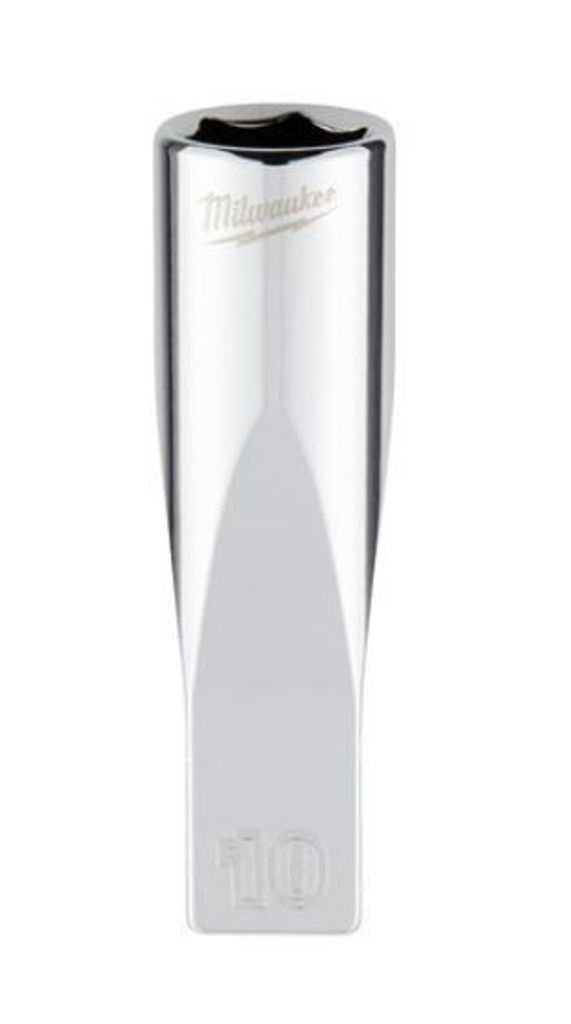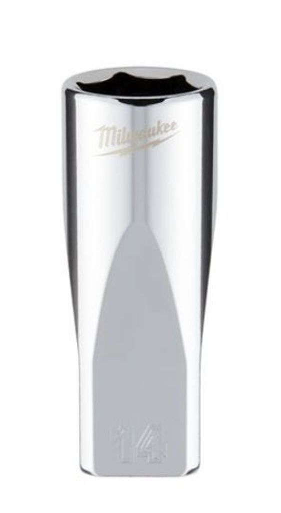 Milwaukee 1/4 tum lång hylsa med kraftigt FOUR FLAT skaft ger säkert grepp, hög kontroll och snabb hantering. FOUR FLAT på sidorna förhindrar rullning på bänk och golv. Bläckstämplad storlek ger tydlig läsbarhet även i svagt ljus och den slitstarka krom finishen motstår korrosion. Längd 50 mm för bättre åtkomst i djupa fästdon