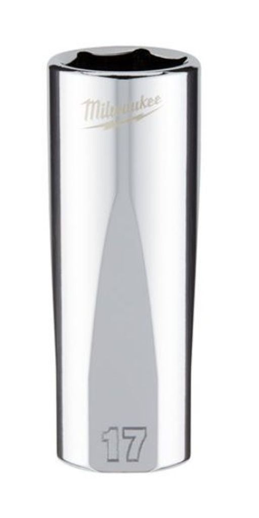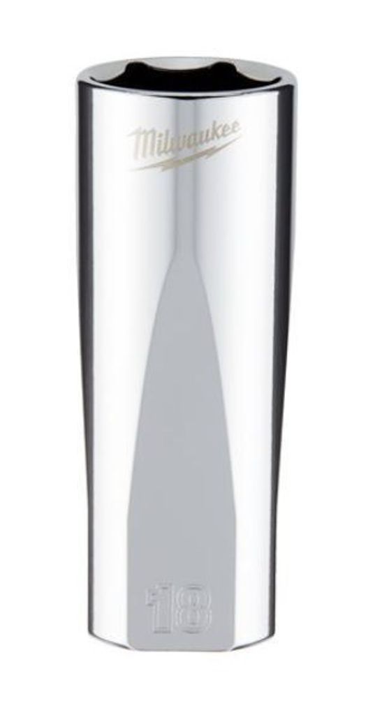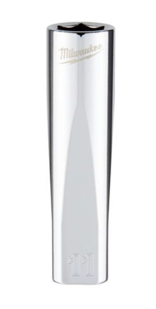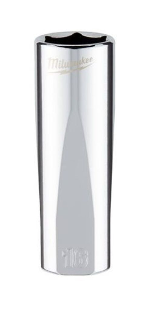 Milwaukee 3/8 tum lång hylsa med kraftigt FOUR FLAT skaft ger säkert grepp och hög kontroll. FOUR FLAT på sidorna förhindrar rullning på bänk och golv och underlättar lossning när hylsan sitter hårt. Bläckstämplad storlek ger snabb läsbarhet och den slitstarka krom finishen står emot korrosion. Längd 63 mm för bättre åtkomst