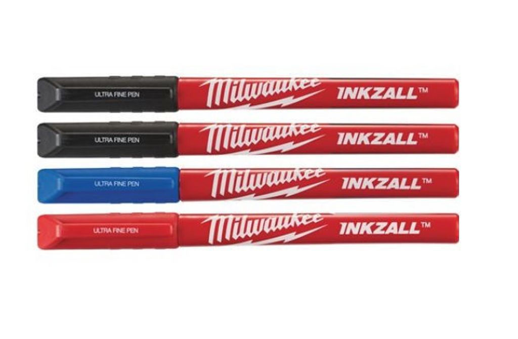Milwaukee INKZALL™ markörpennor med tunn spets (cirka 0,6 mm). För märkning av etiketter för elektriska ledningar eller kommentarer på arkitektritningar.