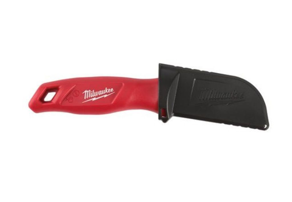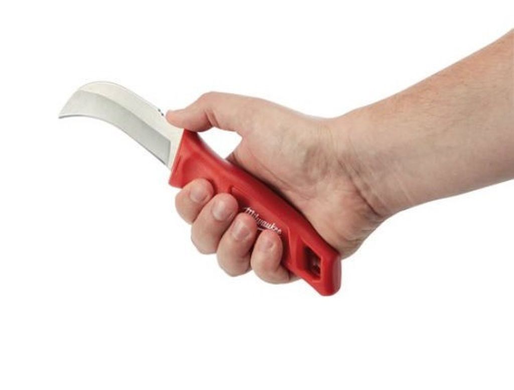 Milwaukee hawkbill kniv idealisk för strippning av tråd och kabel. Rostfritt stålblad. Stort ergonomiskt handtag utformat för bekväm användning med handskar.