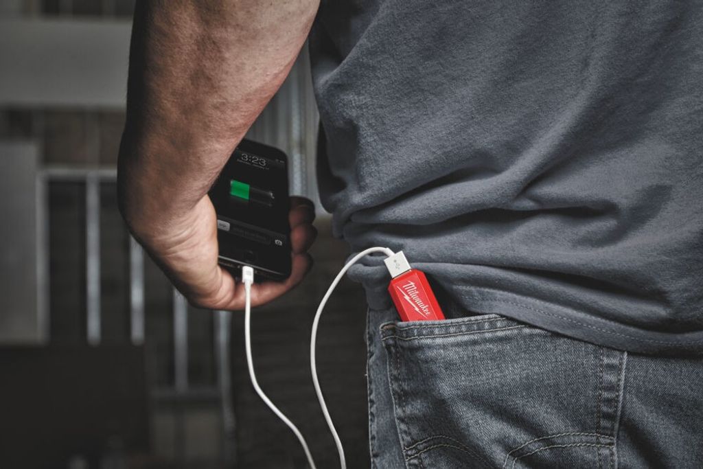 Milwaukee REDLITHIUM™ USB-startpaket levereras komplett med en USB-uppladdningsbar powerbank och laddare samt en USB-kabel, vilket gör det enkelt att ladda batteriet var du än är.