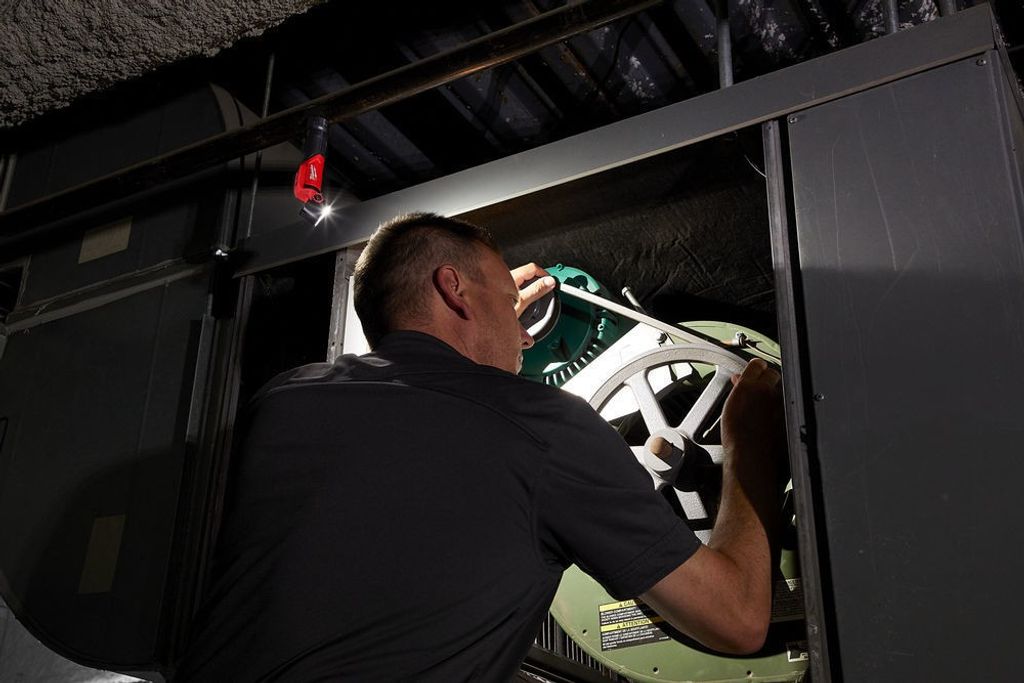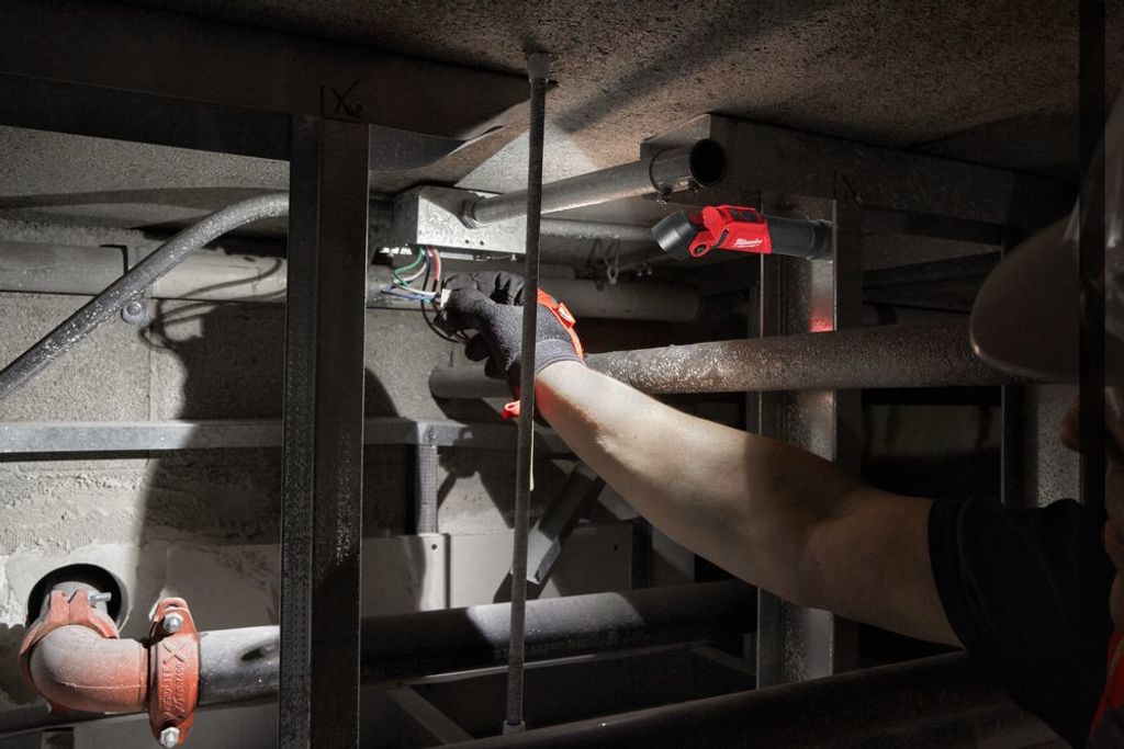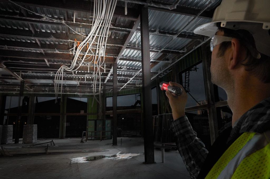 Milwaukee L4 PWL-301 är en arbetslampa som ger upp till 500 lumen i ljusstyrka med en riktbar lampa i toppen. Laddas enkelt via en USB-kabel.