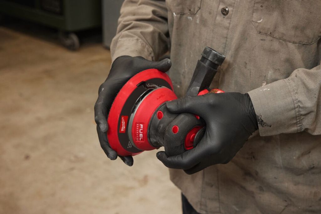 Den verktygslösa bytet av stöddynan och det universella kardborrefästet möjliggör snabba och smidiga byten av slipskivor. Slipen har även en adapter till dammuppsamlare som kan monteras på både vänster och höger sida och är kompatibel med alla Milwaukee®-dammsugare.