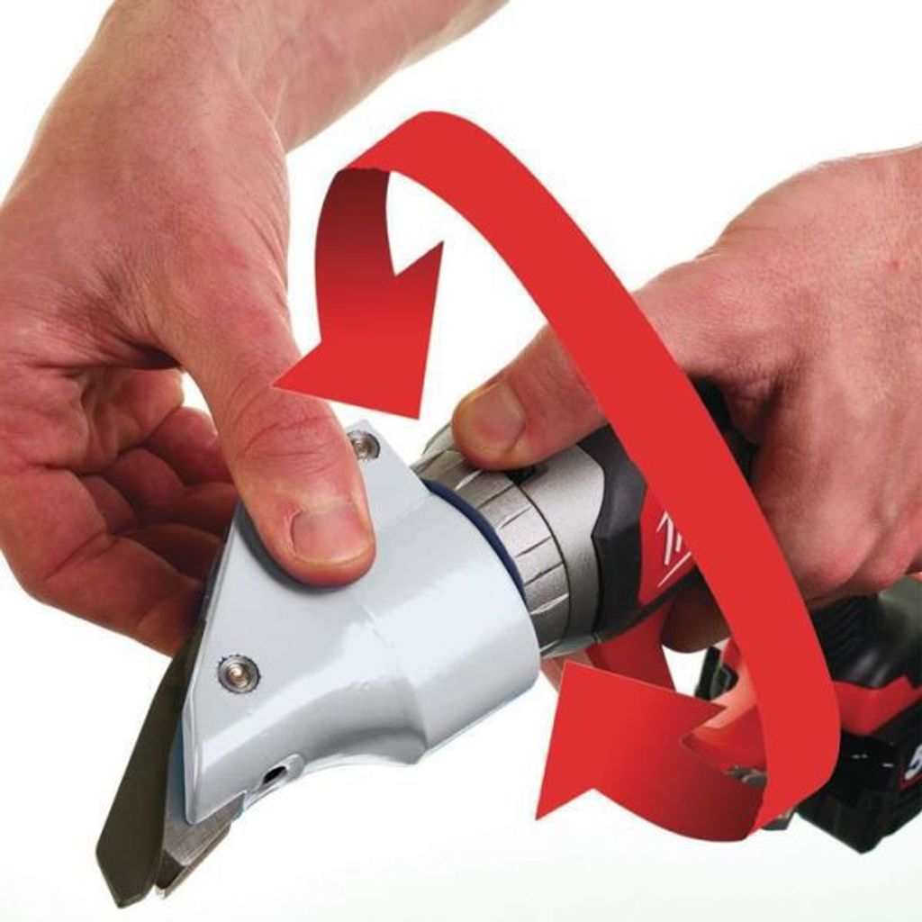 Milwaukees batteridrivna plåtsax M18 BMS12-0 är en kompakt och effektiv plåtsax med ett smidigt vridbart huvud. Plåtsaxhuvudet kan vridas upp till 360 grader vilket ger dig full flexibiltet och utmärkta åtkomstmöjligheter. Den batteridrivna plåtsaxen klara