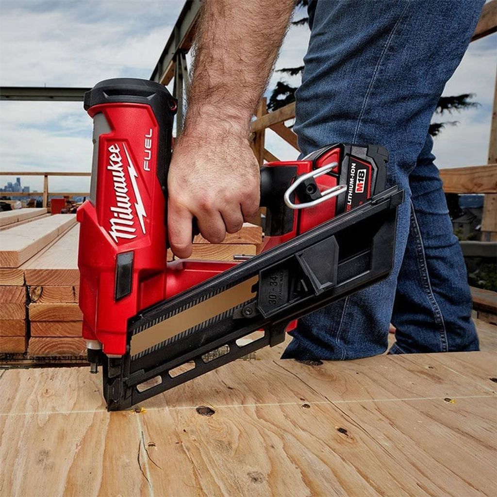 Milwaukee M18 FFN-0C är en trådlös spikpistol på 18V som klarar spikar på 50-90mm och 34 graders lutning. Levereras utan batterier.