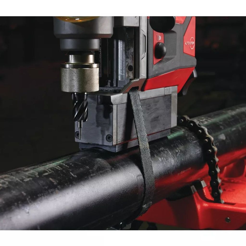 Milwaukee FMDP-502C M18 FUEL magnetborrmaskin med kolborstfri POWERSTATE motor för prestanda att jämföra med nätdrivna verktyg. AUTOSTOP funktion som upptäcker överskott av rotation och avbryter automatiskt strömöverföringen till borren för maximal säkerhet för användaren. Självförsörjande permanenta magneter med upp till 8890 N hållkraft förhindra oavsiktlig avaktivering för maximal säkerhet och enkel justering. 2 växlar, 400/600 varv/min. Max. borrkapacitet: 38 mm med 13 mm med kärnborr. Verktygslöst 19 mm Weldon fäste för snabbt och lätt byte av tillbehör. Vikt 13 kg. Levereras med 2 x 5,0 Ah REDLITHIUM-ION™ batterier, 59 min laddare, tank för smörj- och kylmedel, 13 mm chuck med Weldon fäste, chucknyckel, utmatningsstift och säkerhetsrem.