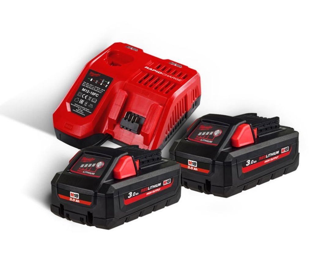 Milwaukee M18 HNRG-302; M18 HB3.0-M18 HIGH OUTPUT 3.0 Ah-batteri. M12 18 FC- M12-M18 multiladdare. Levereras utan väska.