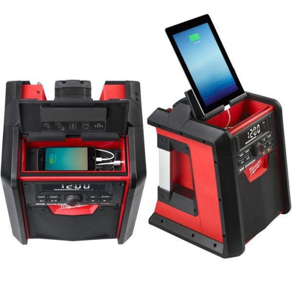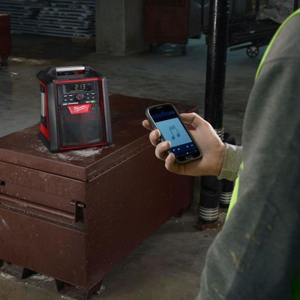 Milwaukee M18 RC-0 är en smidig radioladdare som laddar batterier, men även radion kan även drivas av batterier.
