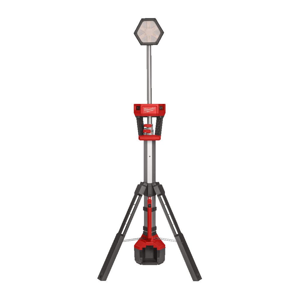Milwaukee M18 LED stativlampa ger kraftfull TRUEVIEW arbetsbelysning upp till 2800 lumen. Stöttåligt huvud justeras 230° vertikalt och 240° horisontellt och stativet höjs mellan 1,1 och 2,2 meter för optimal ljusspridning. IP54 skyddar mot damm och fukt. Kompakt konstruktion med två bärhandtag, låg tyngdpunkt och armerade ben. Levereras utan batterier och laddare