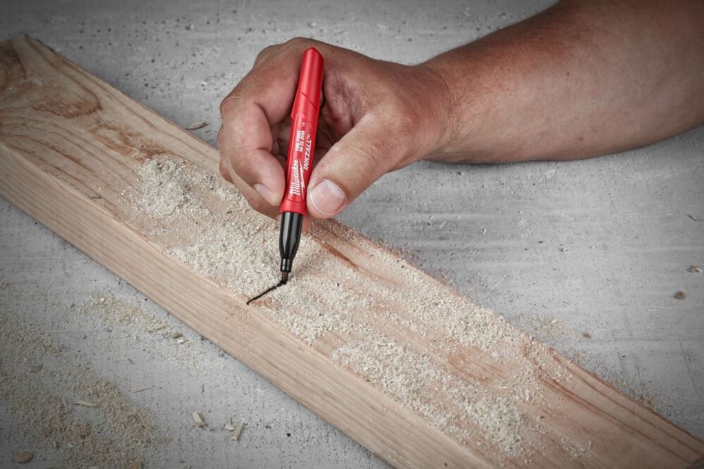 Den slitstarka akrylspetsen garanterar en långvarig prestanda, även när den används på material som betong, trä, metall, plywood och plast. För dem som är oroliga för att pennan ska torka ut har Milwaukee beaktat detta genom att designa markören så att den fortfarande fungerar perfekt även efter 72 timmar utan kork.