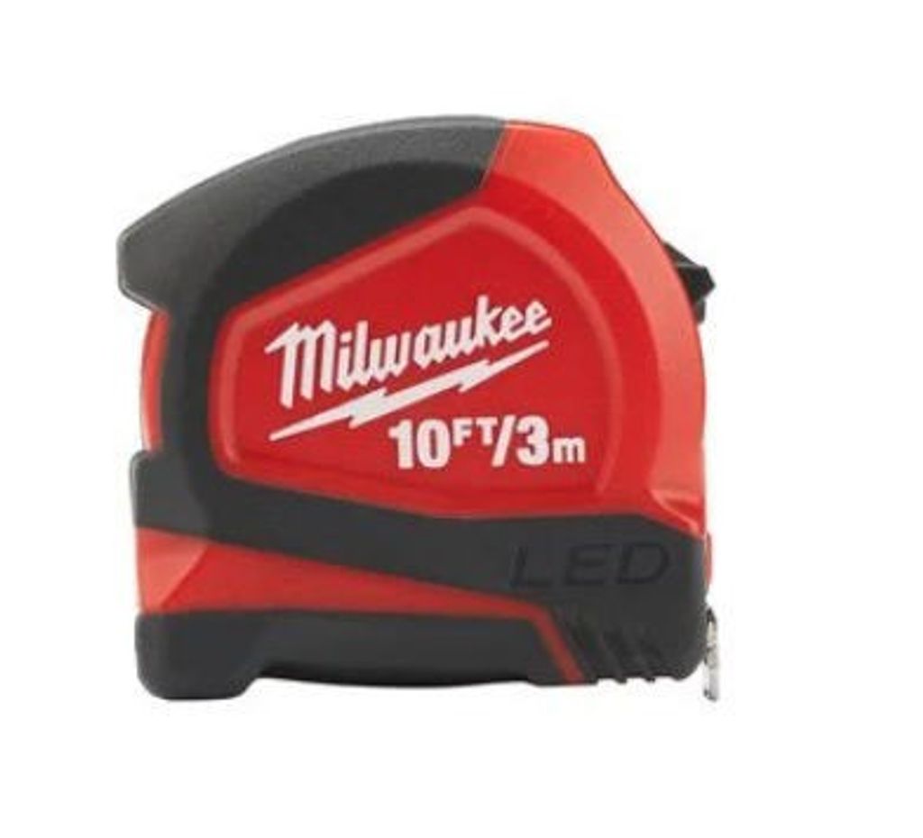 Milwaukee måttband med 19 lux LED-lampa som belyser mätpunkten. Nylonbelagt skydd mott damm, smuts och vatten. ABS-hölje med mjukt gummigrepp för extra komfort och hållbarhet på arbetsplatsen.