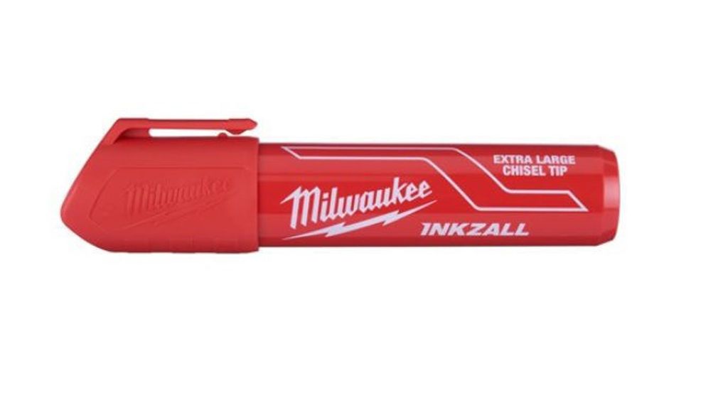 Milwaukee mejselspetsmarkör INKZALL™ kan användas på ytor med olja, vätska eller smuts. Markören fungerar likväl efter 72 timmar utan kork.