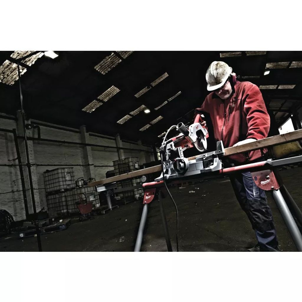 Milwaukee Universalstativ som passar de flesta fabrikaten på marknaden. Sågbordet har en totallängd på 2,08m vid utfällt läge och har en mycket kompakt och ergonomisk design.