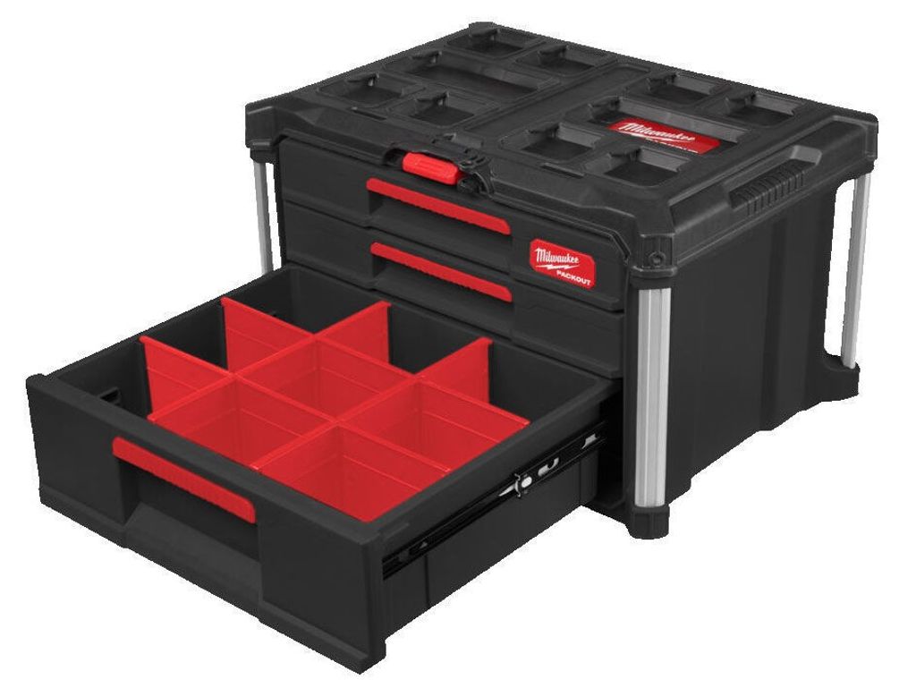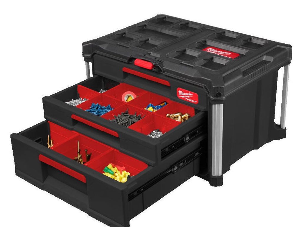 Milwaukee Packout Förvaringsbox 2+1 lådset erbjuder överlägsen organisering och säkerhet för dina verktyg, med robusta lådor och anpassningsbara avdelare, en del av det flexibla PACKOUT™ förvaringssystemet.