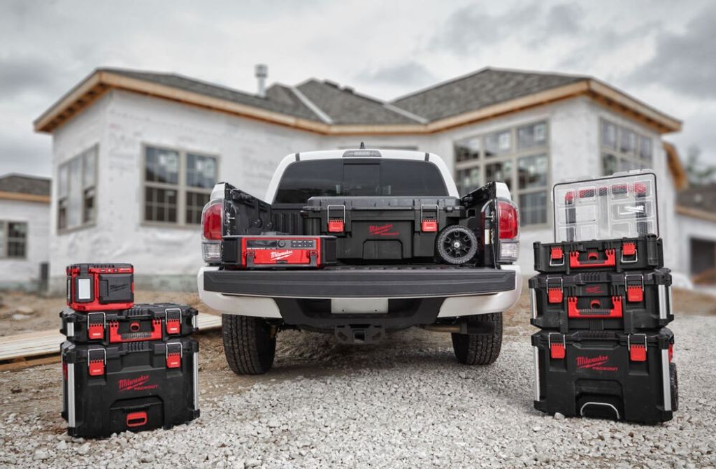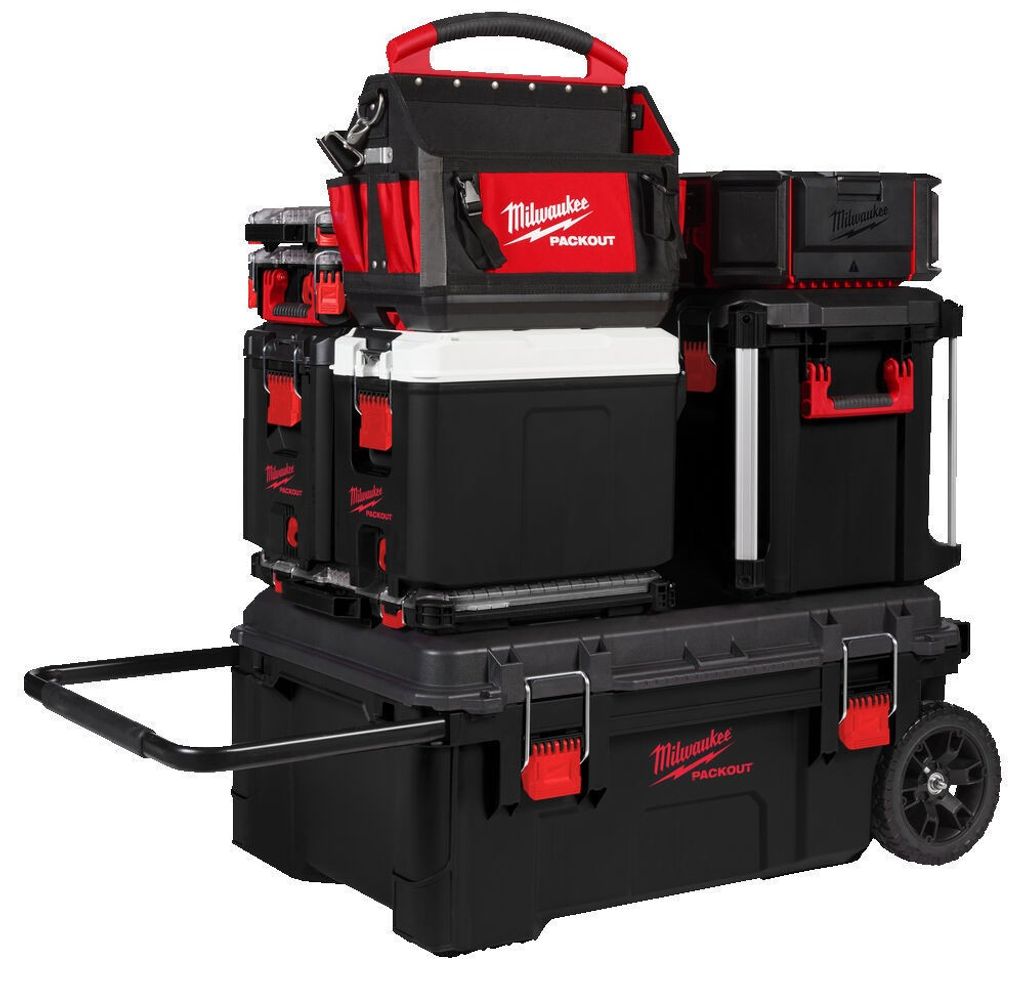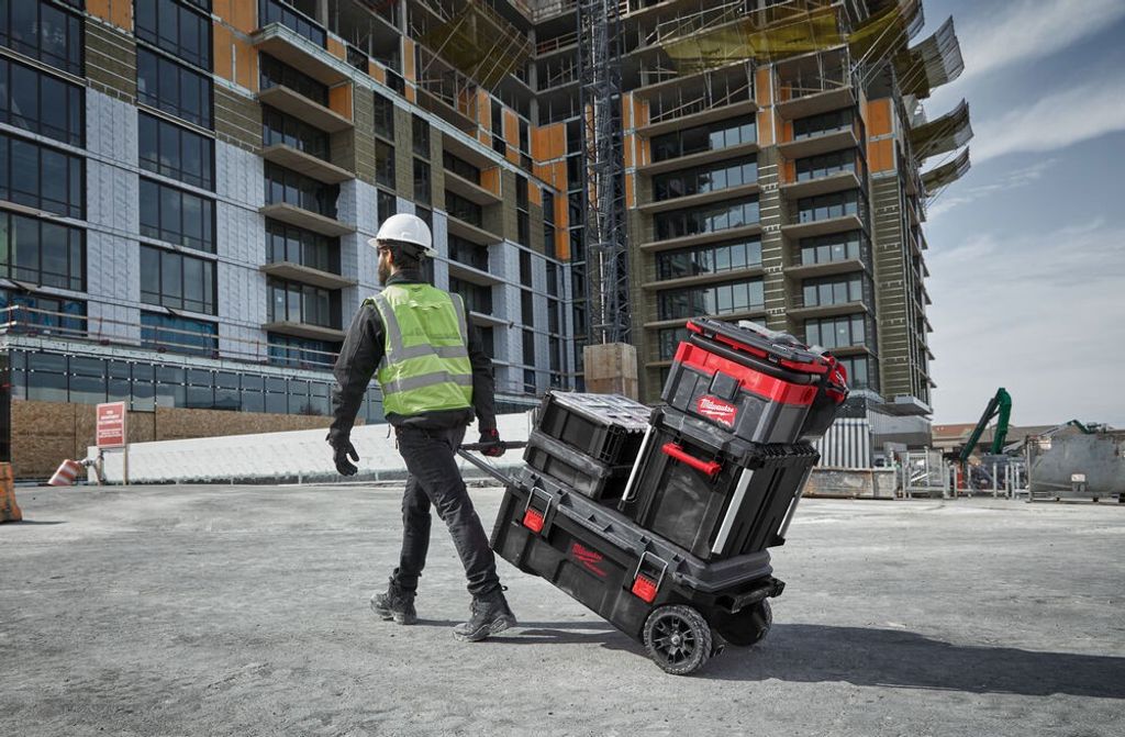Milwaukee Packout verktygslåda på hjul som du även kan fästa dina Packout verktygsväskor och packout maskinväskor på.