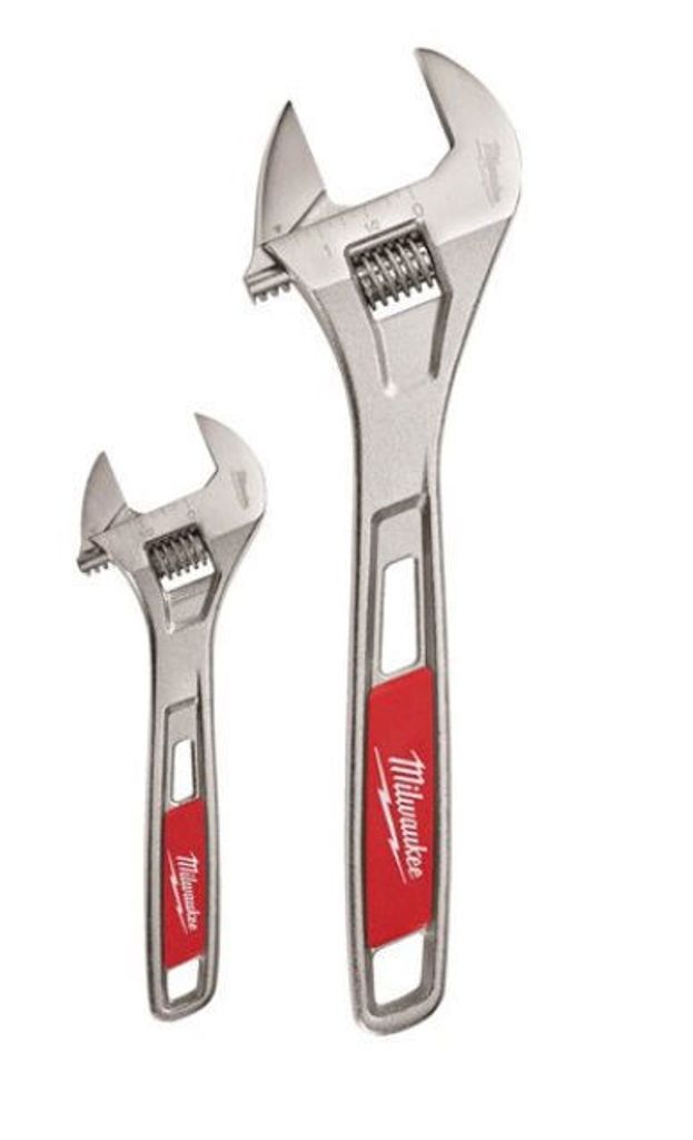 Milwaukee skiftnyckelsats med skiftnyckel 150 mm (48227406) och 200 mm (48227410). Skiftnycklar med justerbar skruv designad för mjuk justering. Käftarna kan inte ramla av. Förkromad för maximalt skydd mot rost och hållbarhet.