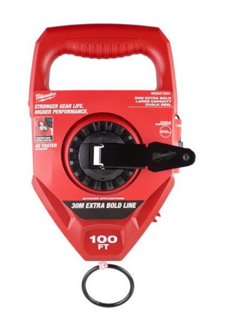 Milwaukee snörslå med stor kritbehållare.