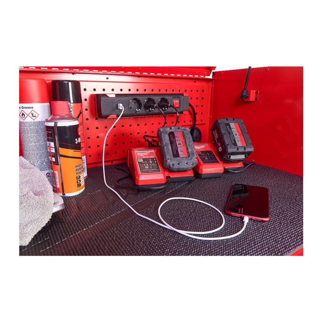 - Eluttag gör det möjligt att ladda batterier direkt på skåpet.