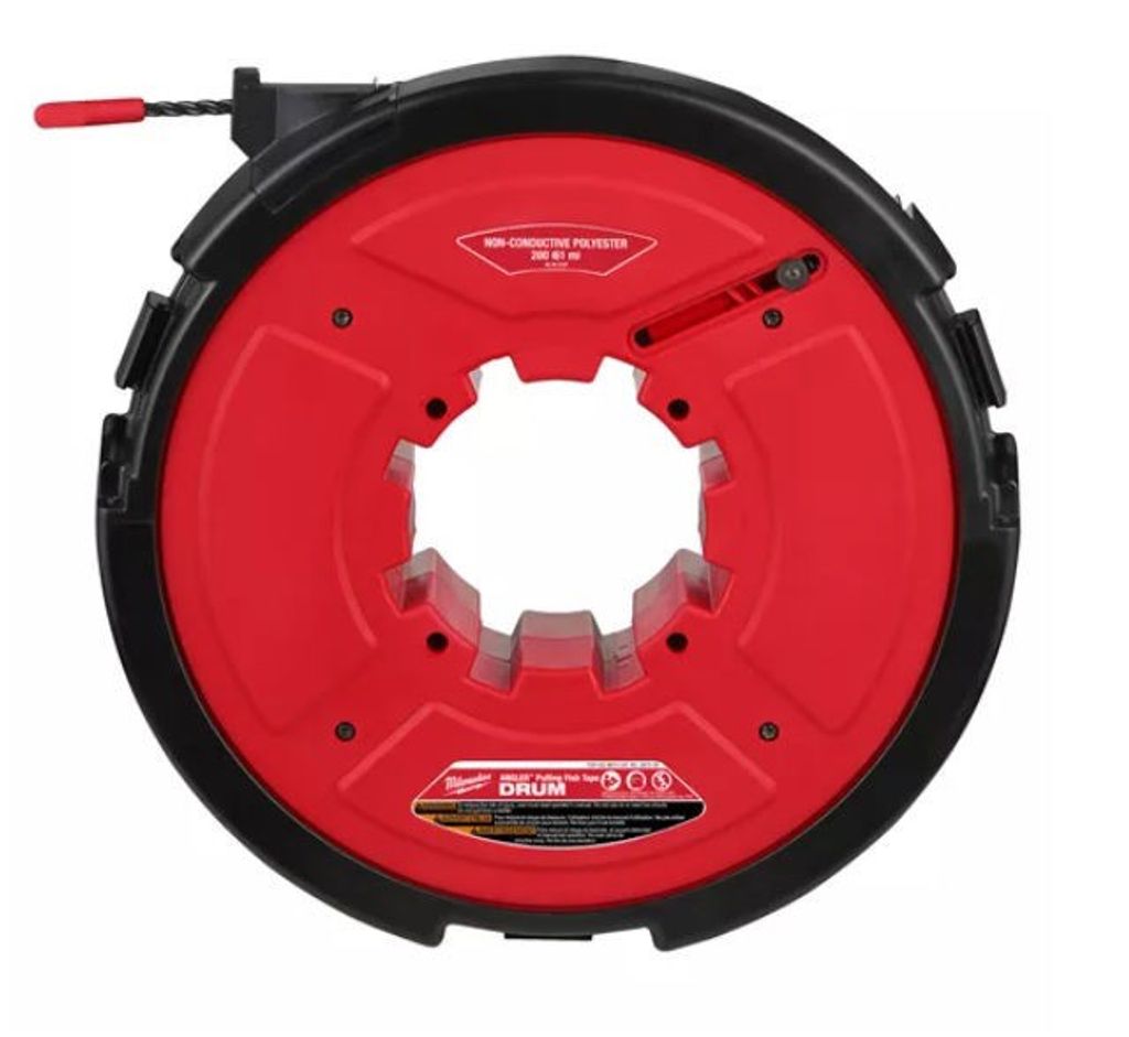 Milwaukee trumma med 60 m glasfiberband. Trumma med icke ledande band till dragfjäder.