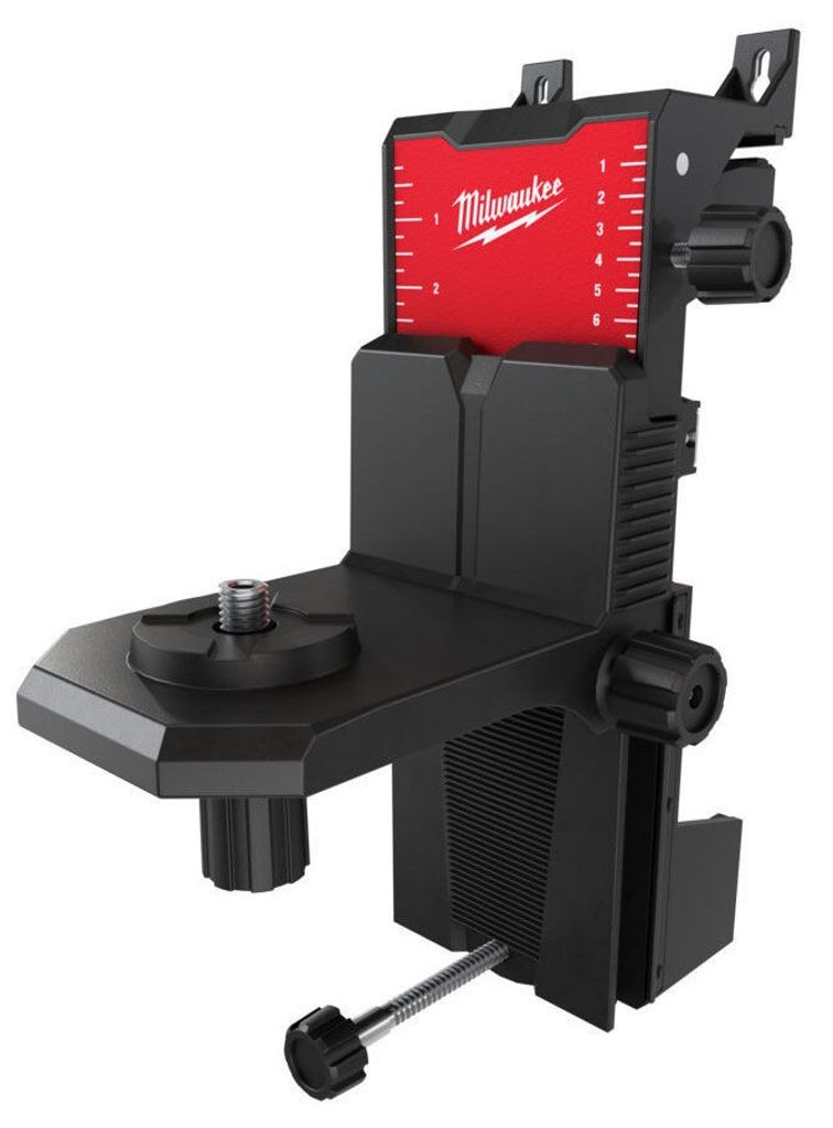 Milwaukee LWM Väggfäste till laser erbjuder vertikal mikrojustering för exakt injustering vid montering. Det har hål för upphängning, materialklämma för mångsidig montering på väggar och tak, samt en linjalskala för snabb justering. Kompatibel med alla Milwaukee® rotationslasrar och M12™ linjelasrar.