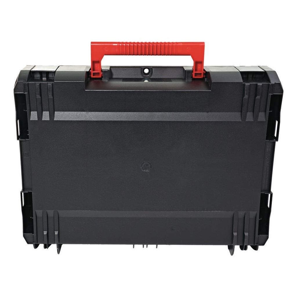 Milwaukee väska med spärrlås och skuminsats. Det unika låsningssystemet gör att två eller flera lådor kan låsas ihop för säker och enkel transport. Det självlåsande systemet gör det enkelt att bära verktyg och tillbehör till arbetsplatsen.