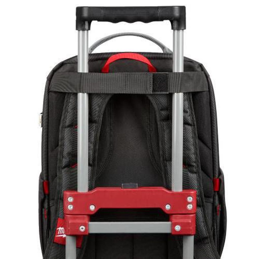 Milwaukee verktygsväska Low profile med totalt 22 fickor. Tillverkad i hållbart material med en förstärkt bas. Ryggsäcken fästes med lätthet på vagn och har en justerbar sele för fin komfort.