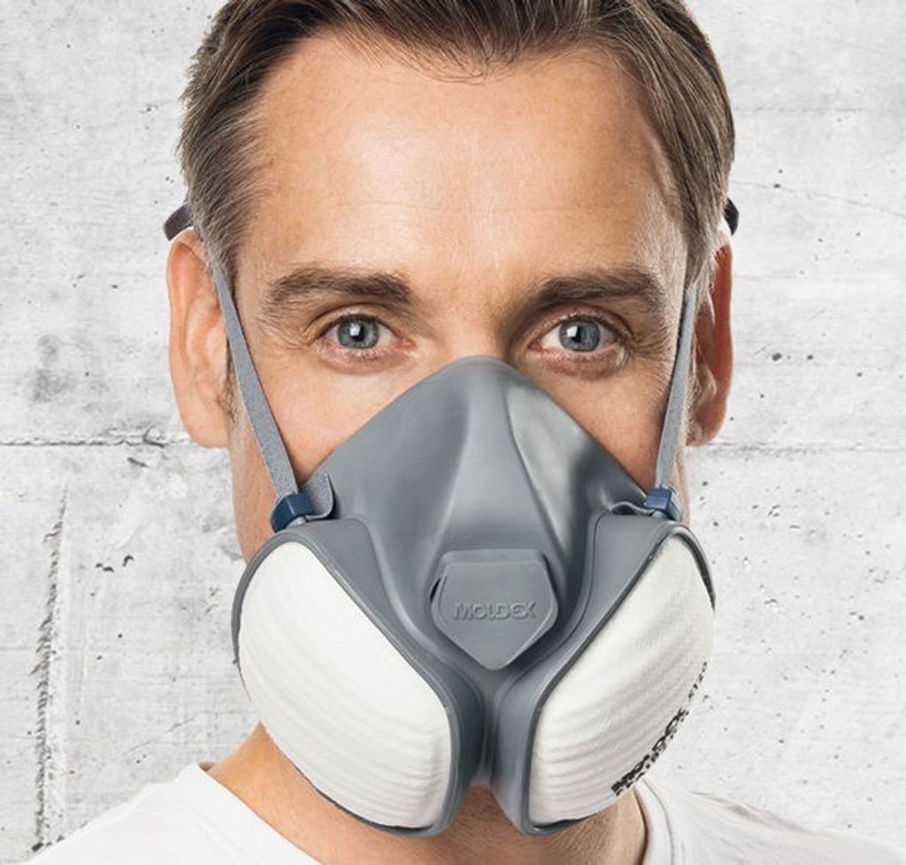 Halvmask Moldex 5230 har ett integrerande filterelement som gör masken underhållsfri
