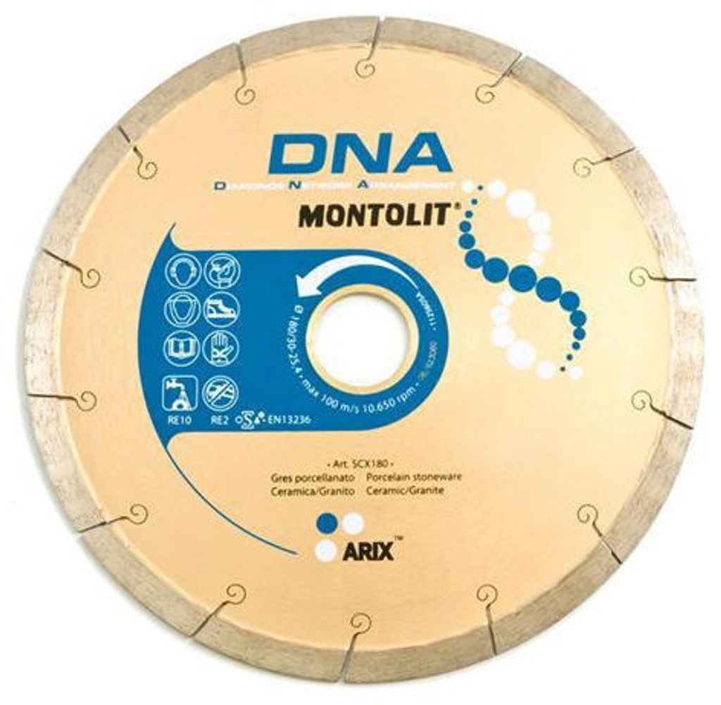 Montolit SCX är en 180 mm slät diamantklinga med den banbrytande "DNA"-tekniken, patenterad av Montolit. Denna teknik innebär att diamanterna är placerade i ett unikt tredimensionellt mönster, vilket ger klingan upp till 50 % längre livslängd och 30 % högre skärhastighet än vanliga diamantklingor. SCX är designad för våtkapning av kakel, klinker och granitkeramik, och levererar snabba, exakta och mycket fina snitt. Perfekt för proffs och gör-det-själv-entusiaster som kräver hög precision och prestanda. Med en håldiameter på 25,4/22,2 mm och en segmenttjocklek på 2 mm är denna klinga kompatibel med många våtsågar.