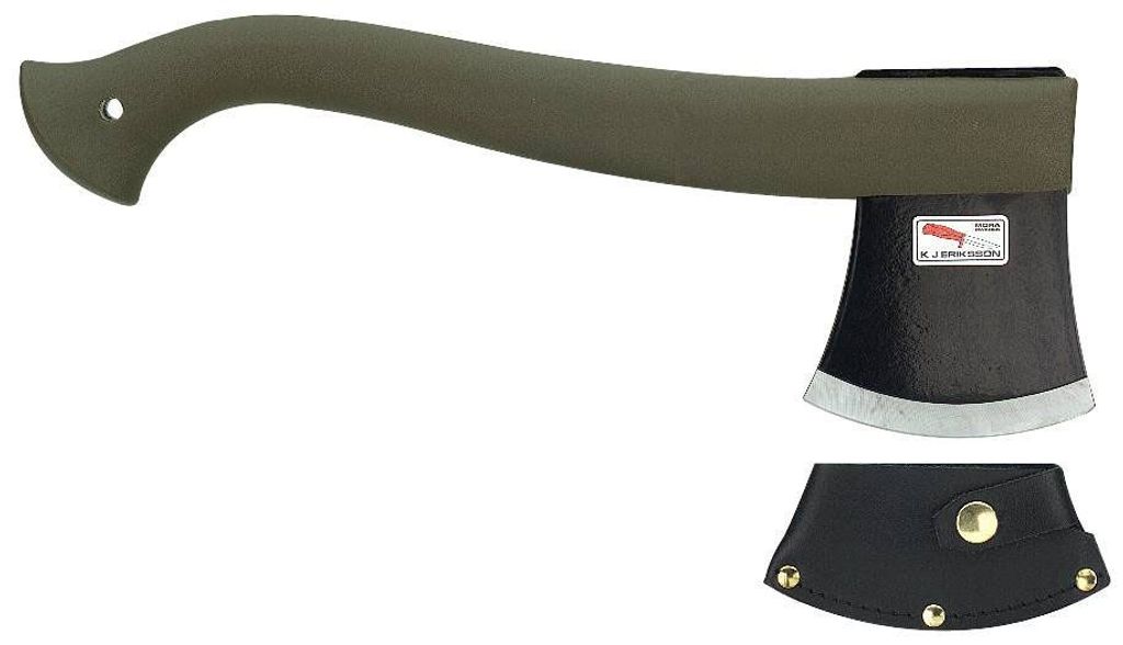 Fritidsyxa av epoxilackerat borstål med gjutet plastskaft. Slagen är av nylon.