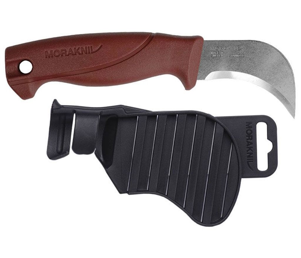 Mora Matt-/takpapps-/läderkniv med ett blad av rostfritt stål och ett skaft av polymer som har en design för att ge optimal dragkraft. Kniven kan med fördel användas för att skära i takpapp och läder.