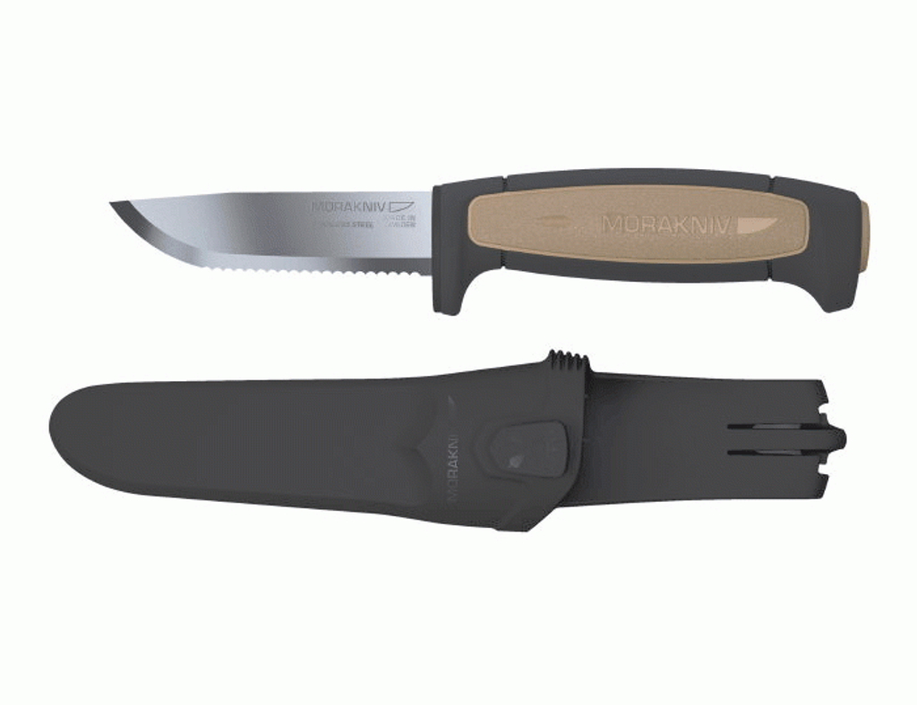 Mora Repkniv med tandat blad till att skära framförallt rep, fiber och nylon. Rostfritt stål håller skärpan länge och tål en högre belastning på bladet. Det är det bästa valet vid arbete i utomhusmiljö. Bladtjocklek: 2,0 mm.