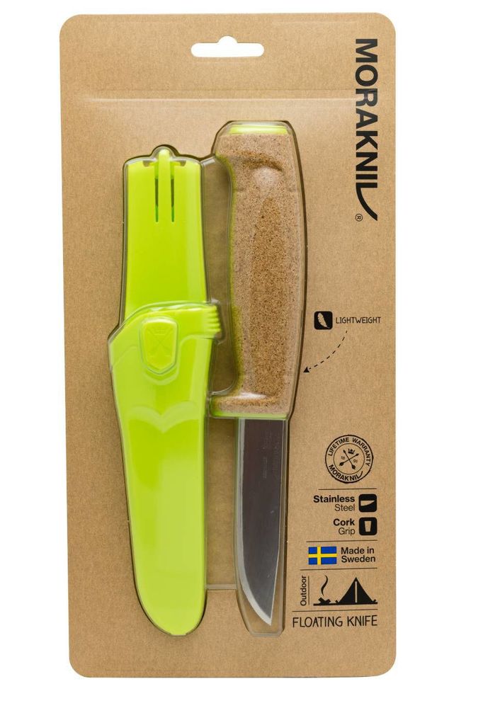 - Knivens limegröna färg gör den enkel att se i vatten.