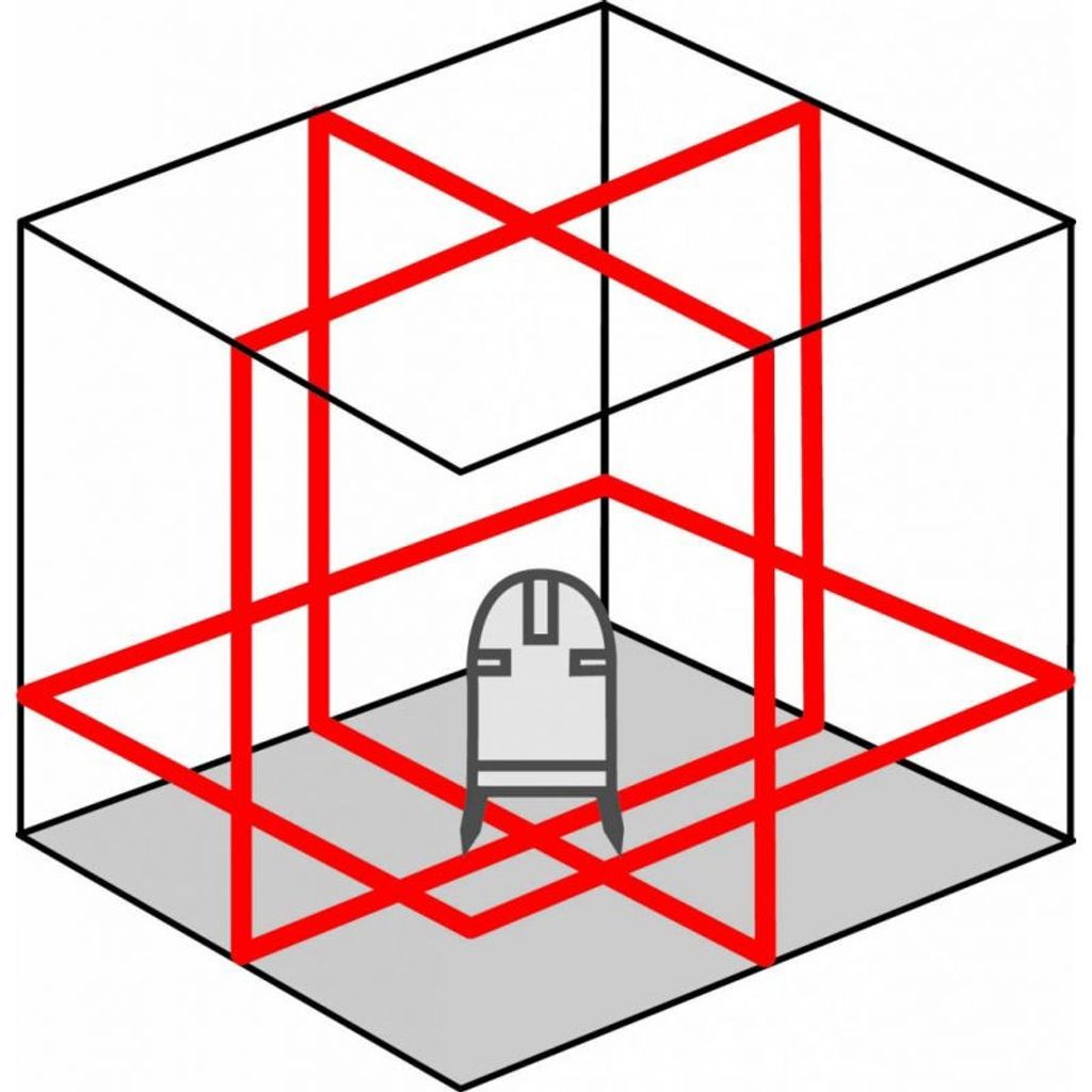 Laserlinjefärg: Röd / Projicering 3 x 360°-linje.