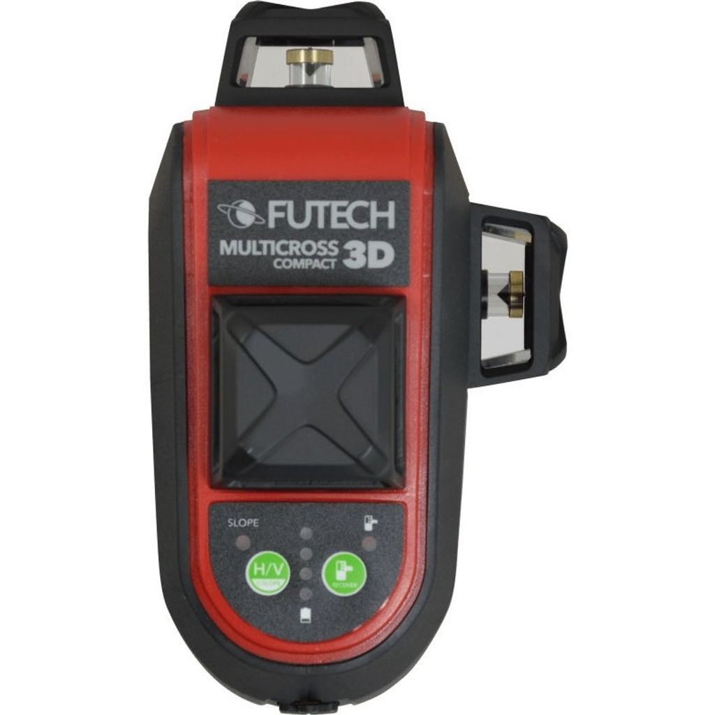 Futech MC3D Pro kompakt är en självnivellerande röd multikorslaser med 3 x 360°-linjer som ger hög arbetseffektivitet och prestanda på horisontella och vertikala nivelleringsapplikationer i hela rummet samt även lodfunktion.