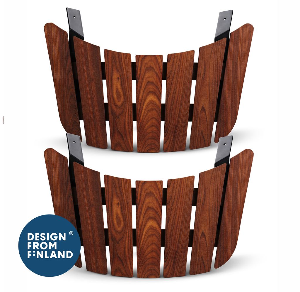 Ge din Muurikka-stekhäll ett rejält lyft med dessa exklusiva sidobord i trä. Bordsskivorna är tillverkade av FSC-certifierad rökt ask – ett vackert och slitstarkt träslag som genom värmebehandling får förbättrad motståndskraft mot väder och slitage. Kombinationen av träets naturliga struktur och den mörka, rökta nyansen gör att sidoborden smälter in naturligt i utemiljön.
