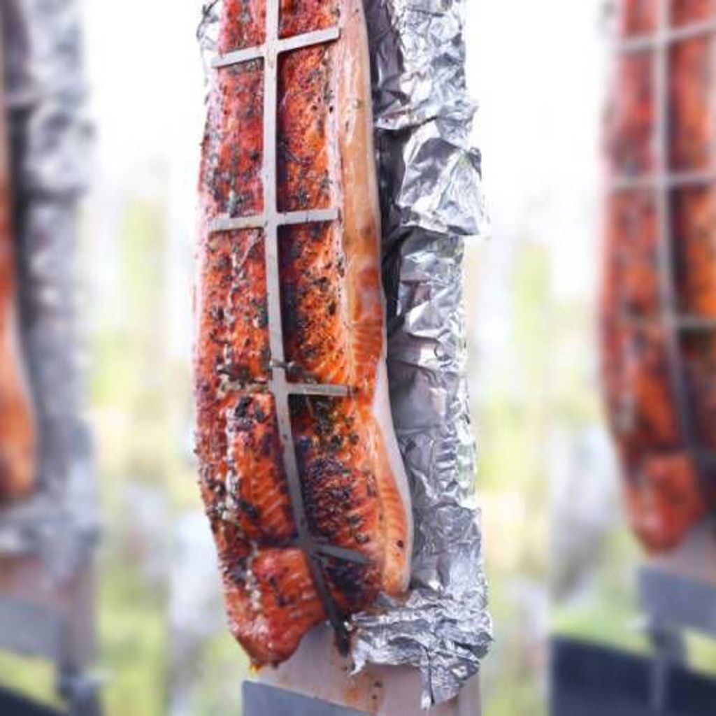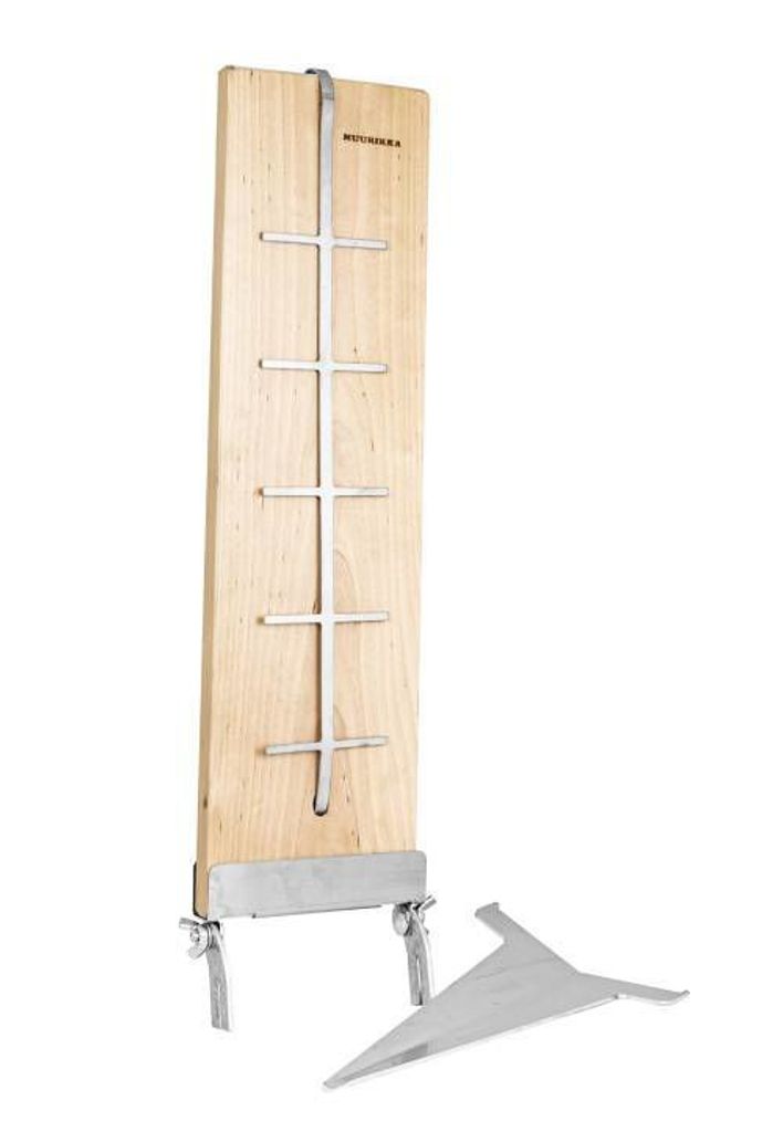 Muurikka flamstekningsplanka med kil. Kan användas t.ex. bredvid en lägereld.