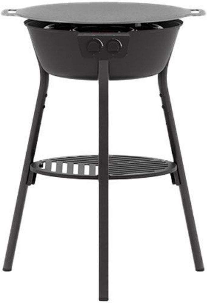 Den stora stekhällen i varmvalsat stål har en diameter på 58 cm och är perfekt för att laga mat för stora sällskap. Värmen kan regleras individuellt på de två gasolringarna, vilket ger möjlighet att skapa olika temperaturzoner på hällen. Detta gör att du kan tillaga olika rätter samtidigt, med optimal temperaturkontroll.
