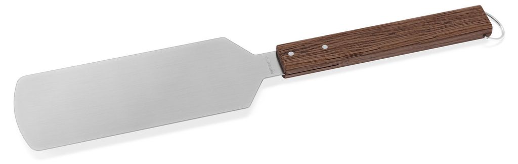Muurikka lång och bred stekspade tillverkad av rostfritt stål med ett D-format ergonomiskt handtag av FSC-certifierat rökt ask. Denna tåliga och estetiskt tilltalande stekspade har en längd på 44 cm och är utrustad med en praktisk ögla för upphängning, vilket gör den idealisk för användning vid grillning och matlagning i stora stekpannor.