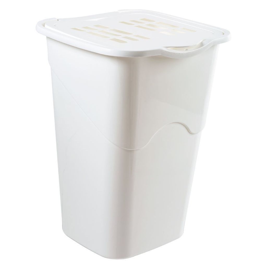 Tvättkorg i stilren design med ventilerat lock. Tillverkad i polypropenplast (PP). Klarar temperaturer från -40° C till +120° C.