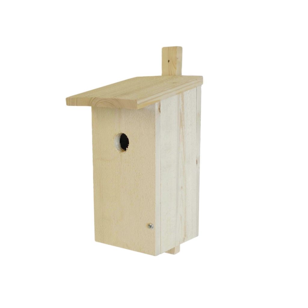 Klassisk fågelholk i trä med håldiameter 35 mm – perfekt för talgoxe, nötväcka, gråsparv och pilfink. Enkelt sätt att bjuda in fågelliv till trädgården.